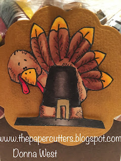 Now onto the challenge! This week I have picked anything with a turkey! If you don't have any turkey's that's ok too. You can do a Fall theme if you would like. I made a little candy box for my friend and added a little turkey from Whipper Snapper Stamps. I colored him with my Copic markers and added a little Gold Wink of Stella on the hat buckle.
